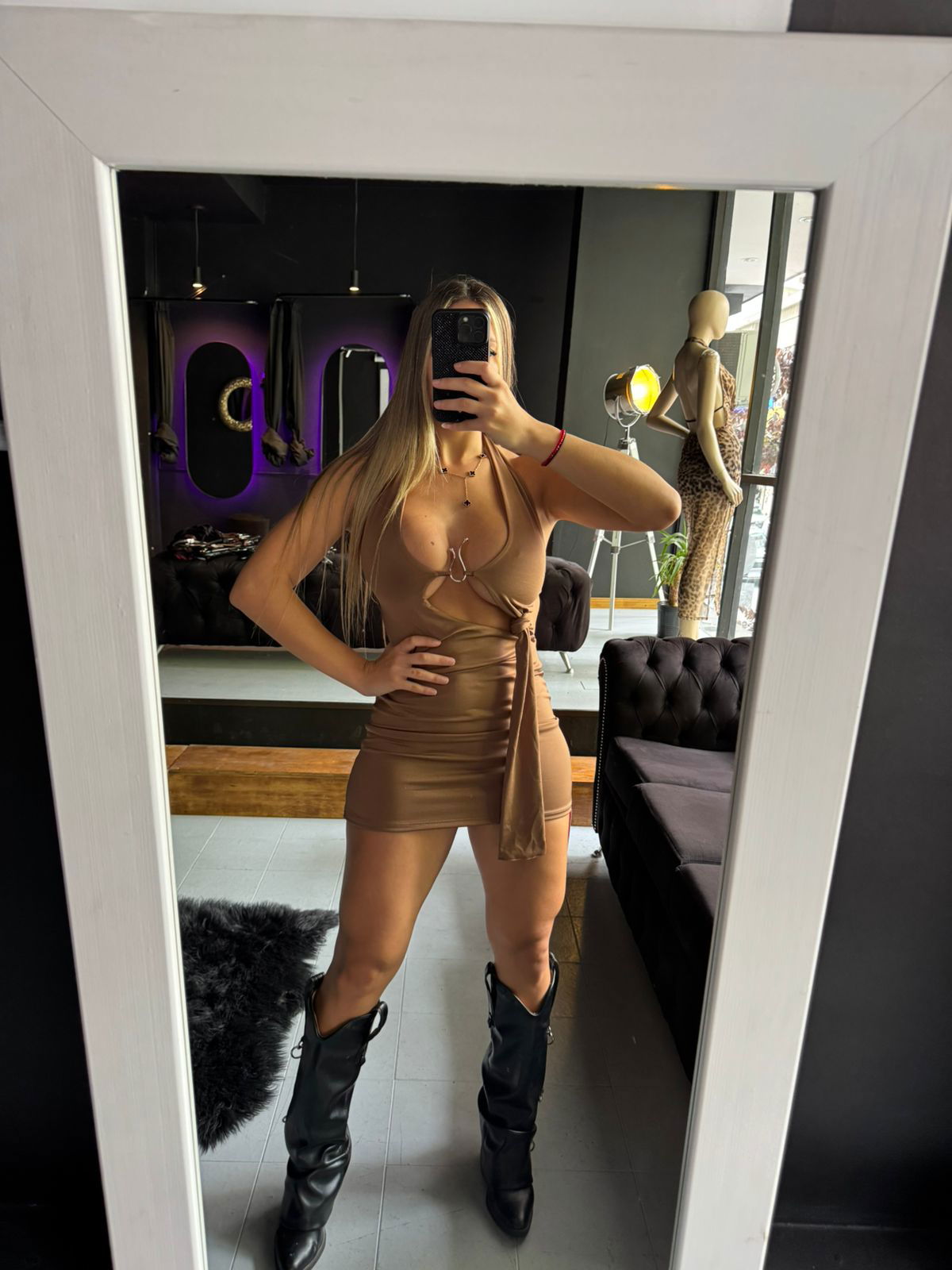 Vestido beige espalda descubierta
