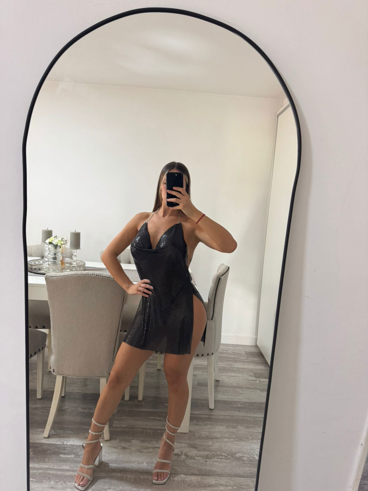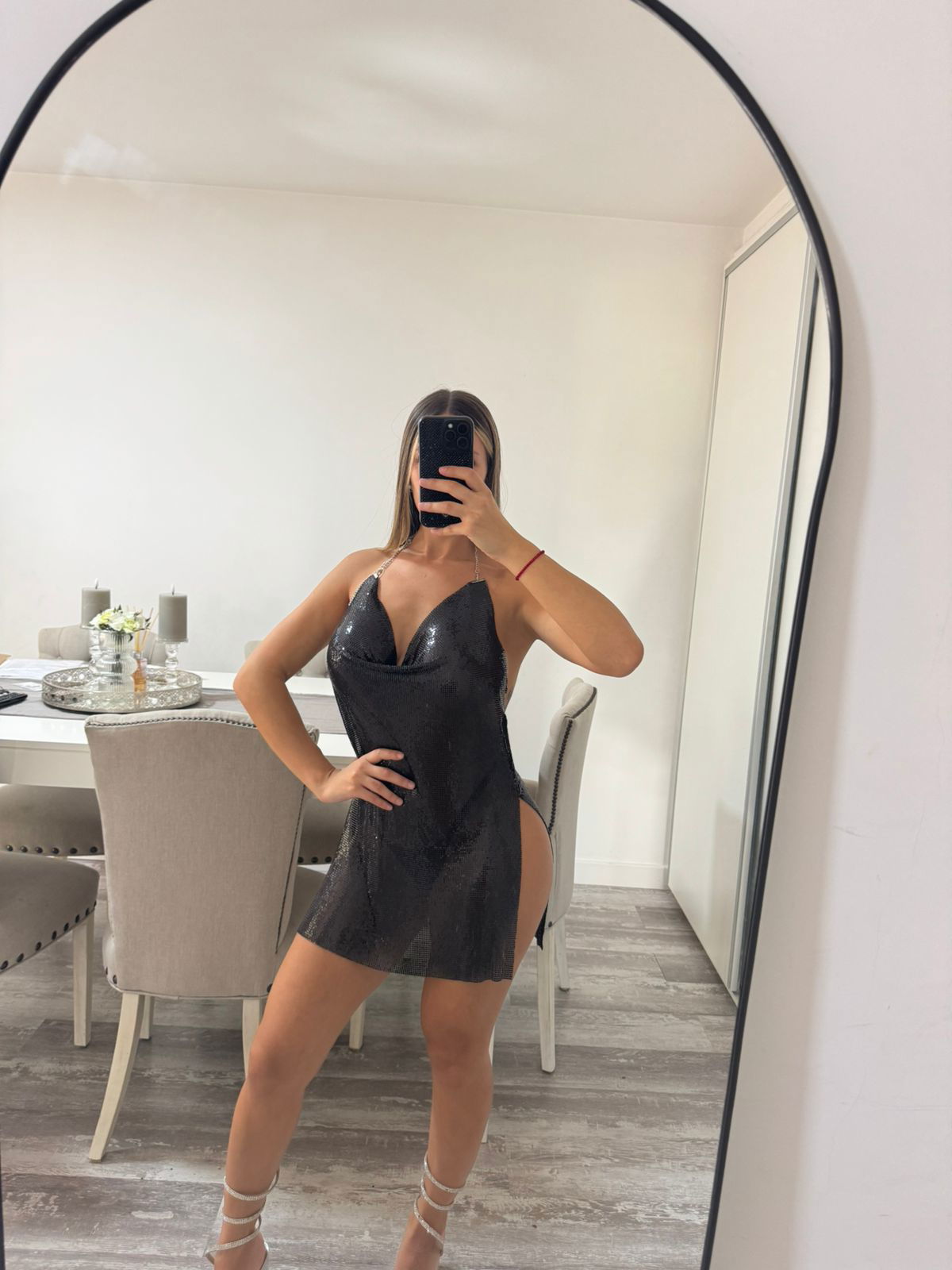 vestido buche metalico negro