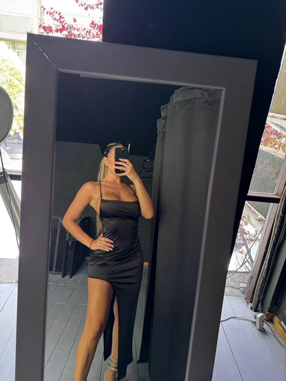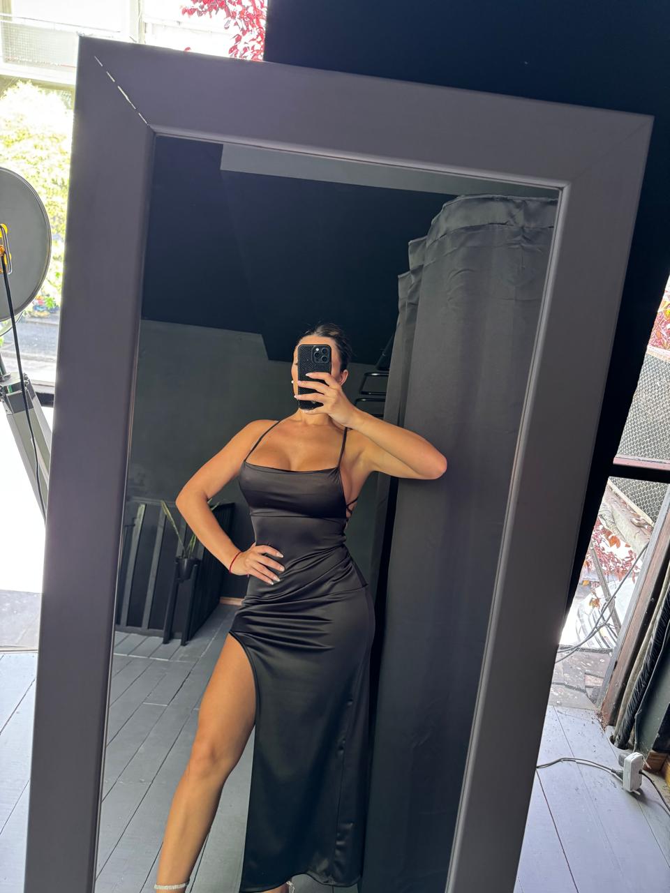 Vestido largo satén espalda cruzada