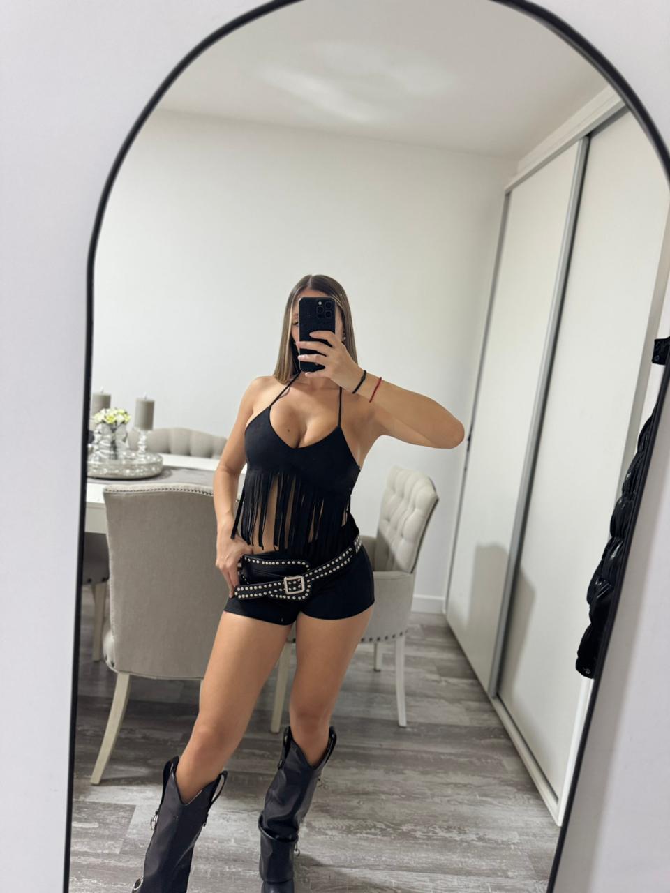 Short negro gamuza
